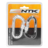 The Alu Carabinner Pack from NTK comes with 2 Binners (6 and 8 mm). This is not a climbing equipment. It is intended to hang light objects in tents or backpacks or be used as a key chain.