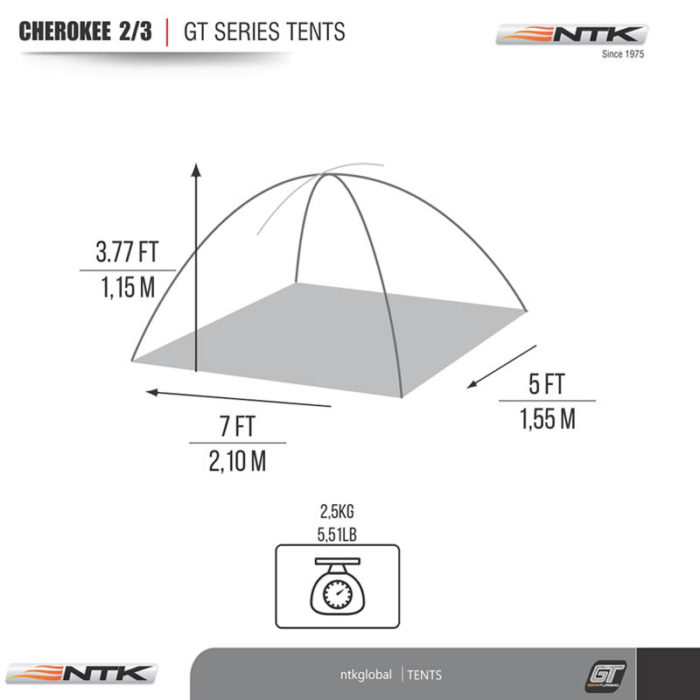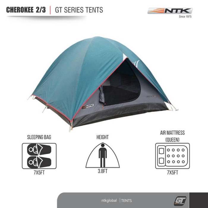 – DESIGNED FOR QUICK & EASY ASSEMBLY – The Cherokee 2- 3 person tent is great for the couples. With easy assembly, the spacious one-door tent weighs 15.2lbs with a comfortable floor size of 7FT x 5FT and 3.8FT center height for maximum comfort.