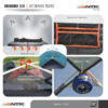 Frame: Fiberglass rods with a diameter greater than the conventional, connected by internal elastic and constructed with Nano Fiber technology (white) and with 100% virgin material providing more strength and flexibility.